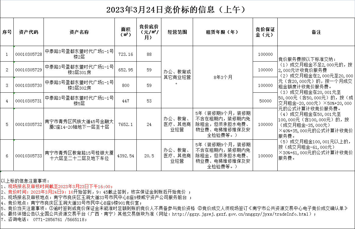 2023年3月24日競(jìng)價(jià)標(biāo)的信息