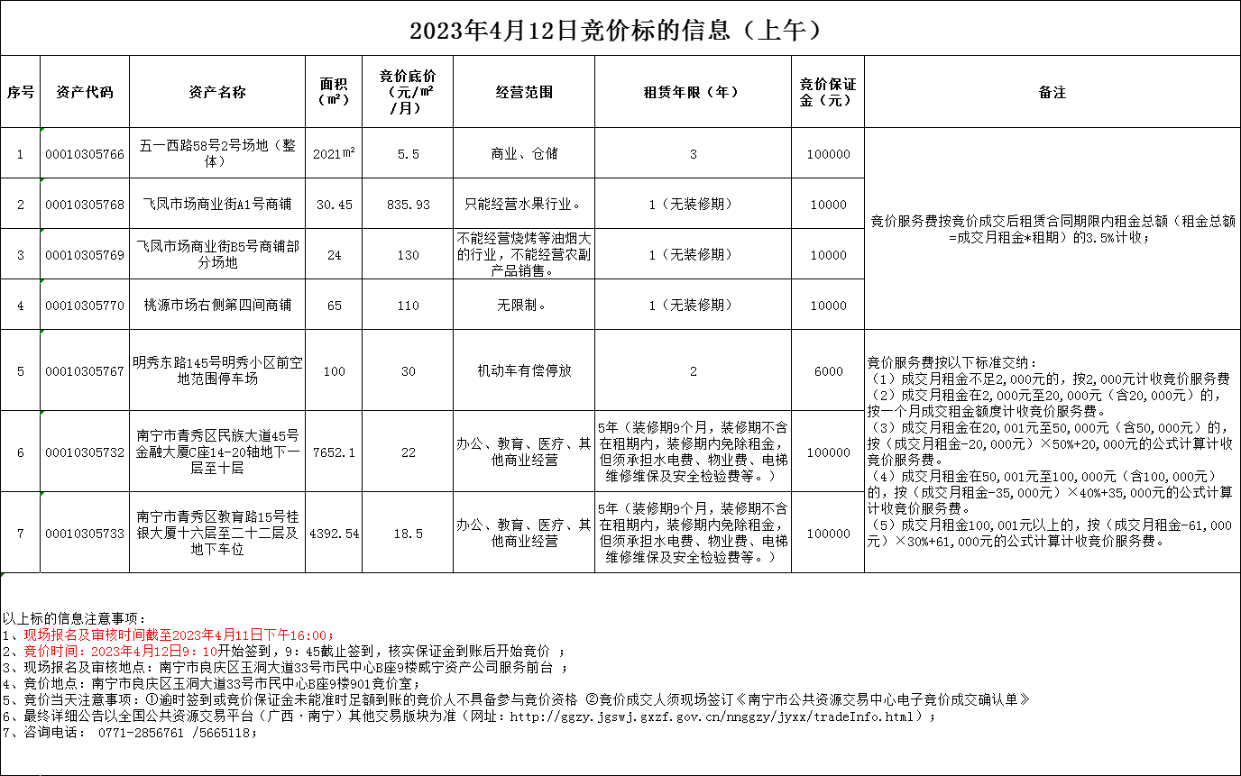 2023年4月12日競(jìng)價(jià)標(biāo)的信息