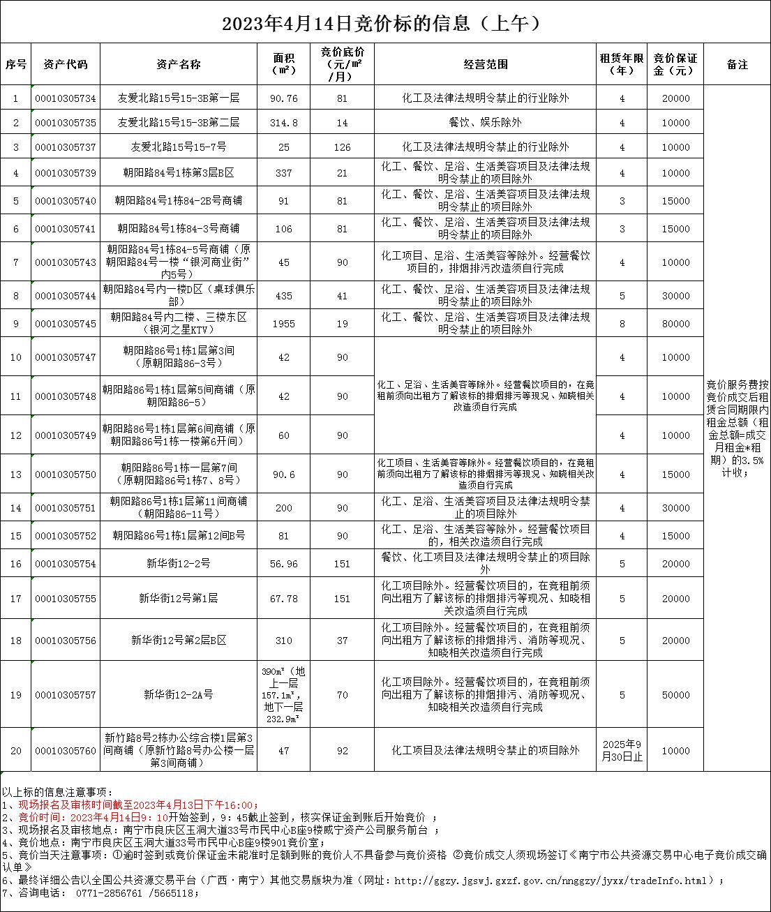 2023年4月14日競價標(biāo)的信息