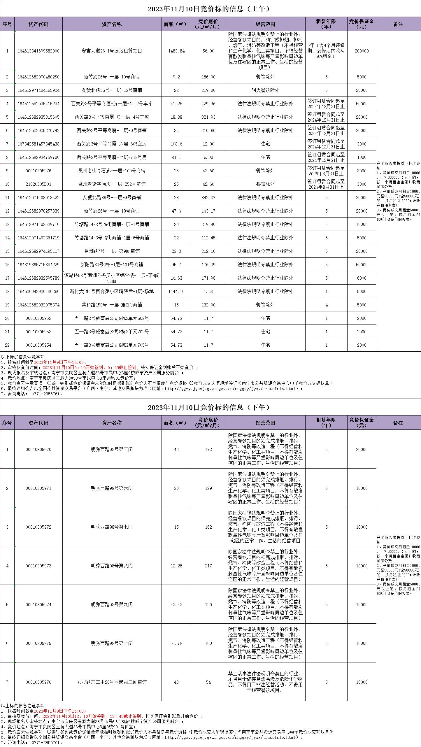 2023年11月10日競(jìng)價(jià)標(biāo)的信息