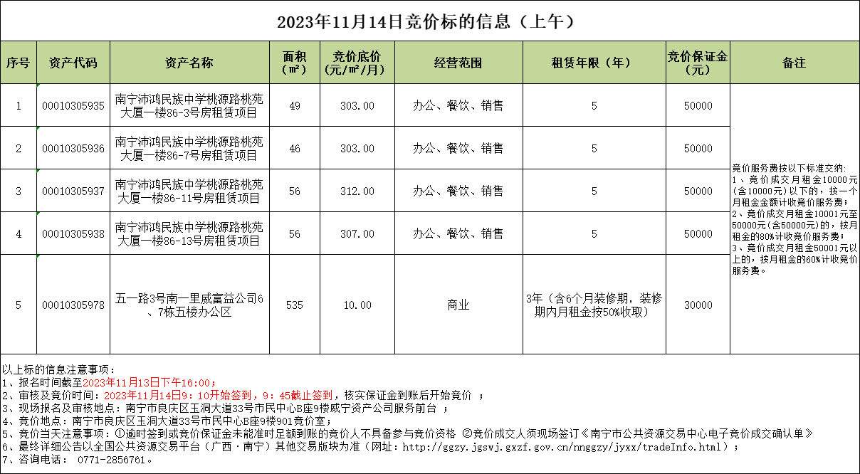 2023年11月14日競價標(biāo)的信息
