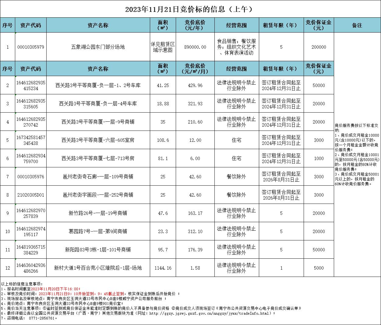 2023年11月21日競價標(biāo)的信息