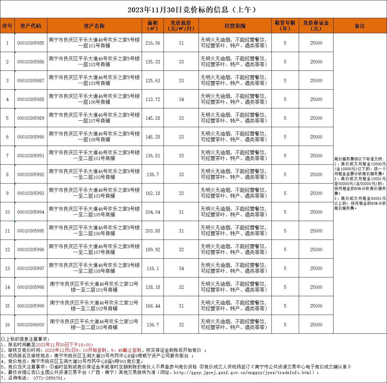 2023年11月30日競價標的信息