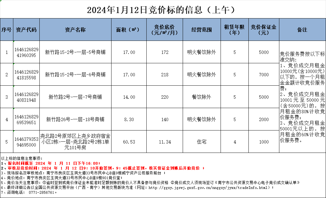 2024年1月12日競價(jià)標(biāo)的信息