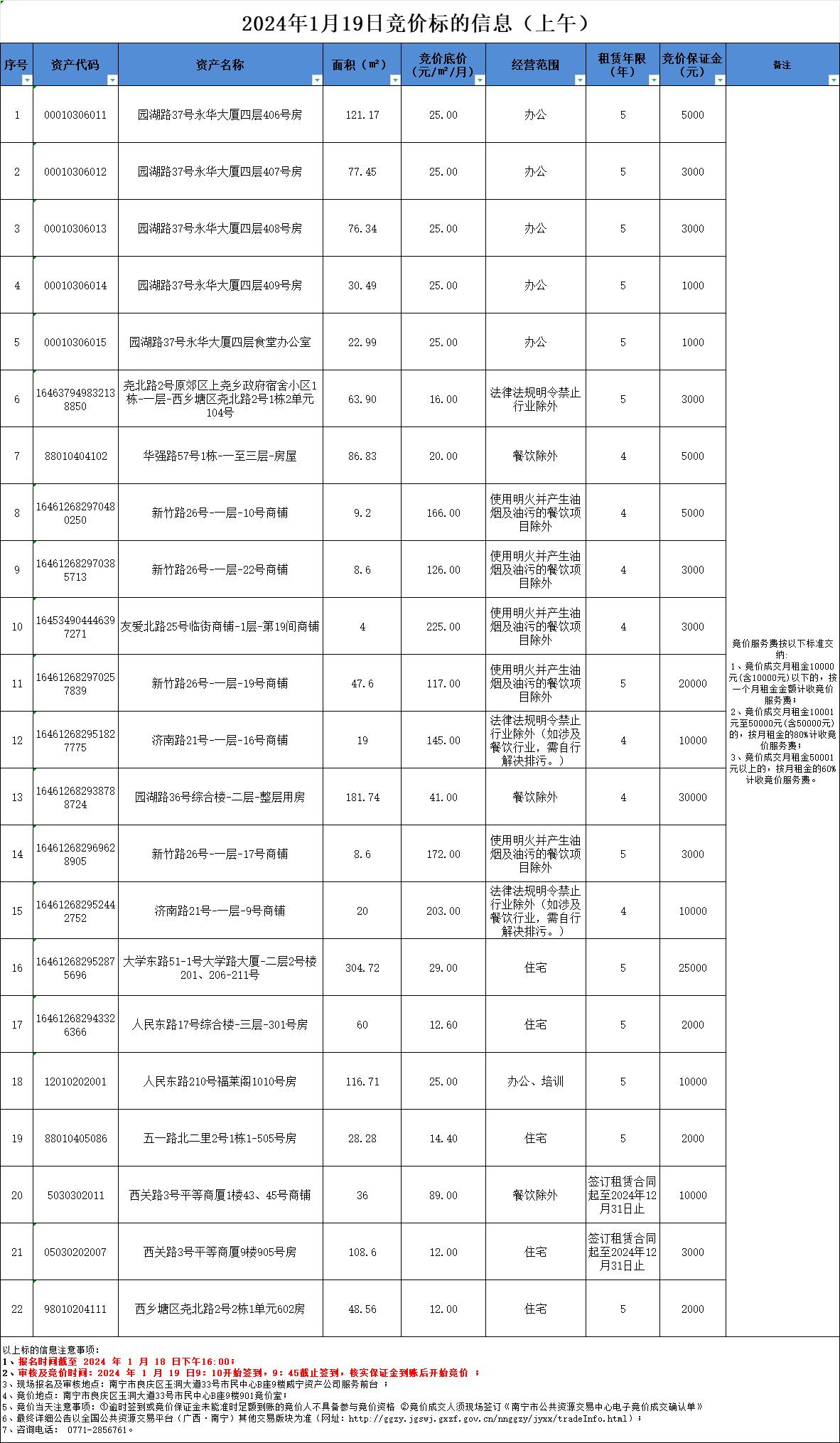 2024年1月19日競價標(biāo)的信息