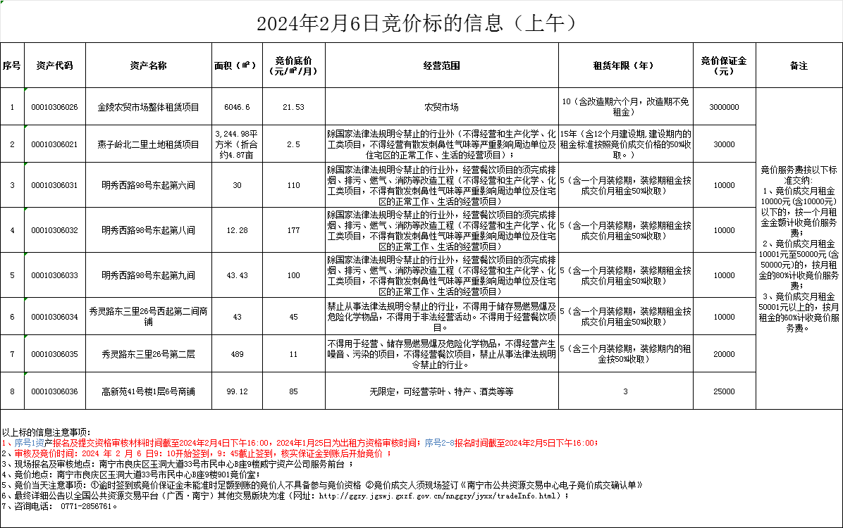 2024年2月6日競(jìng)價(jià)標(biāo)的信息