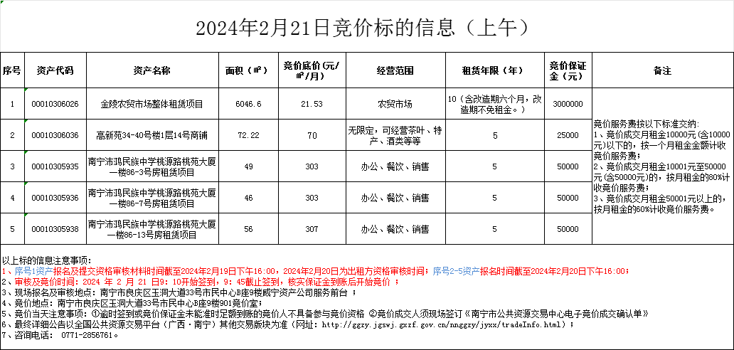 2024年2月21日競價標(biāo)的信息