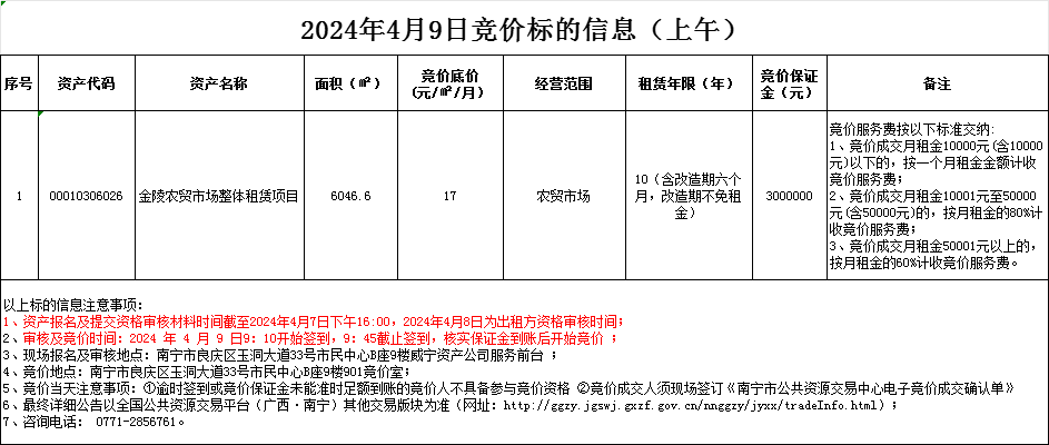 2024年4月9日競(jìng)價(jià)標(biāo)的信息(線下報(bào)價(jià))