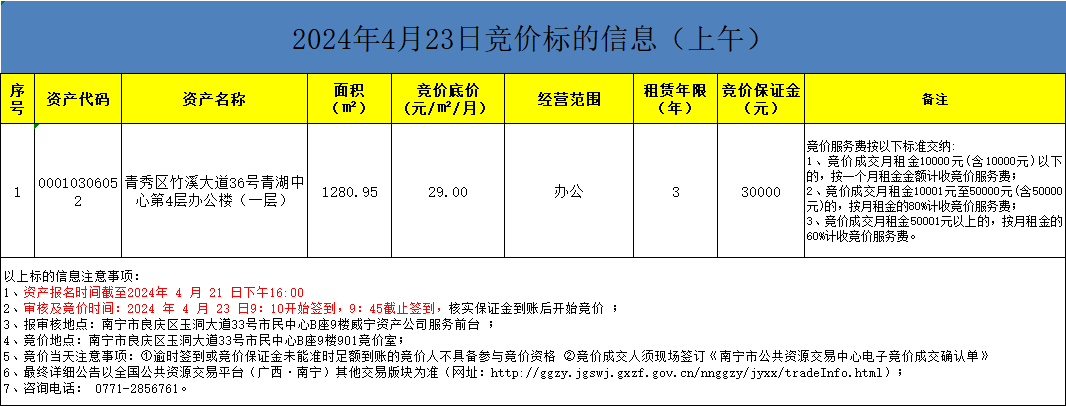 2024年4月23日競價標的信息(現(xiàn)場競價)