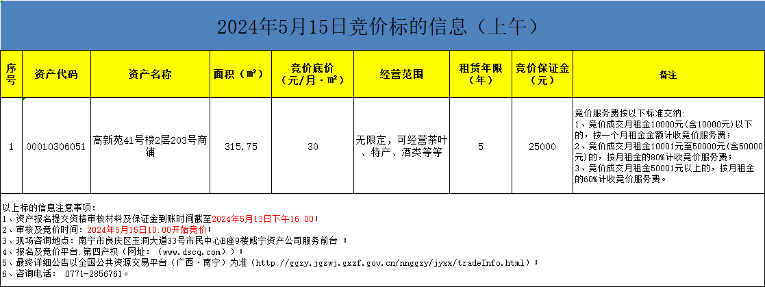 2024年5月15日競價(jià)標(biāo)的信息(線上競價(jià))