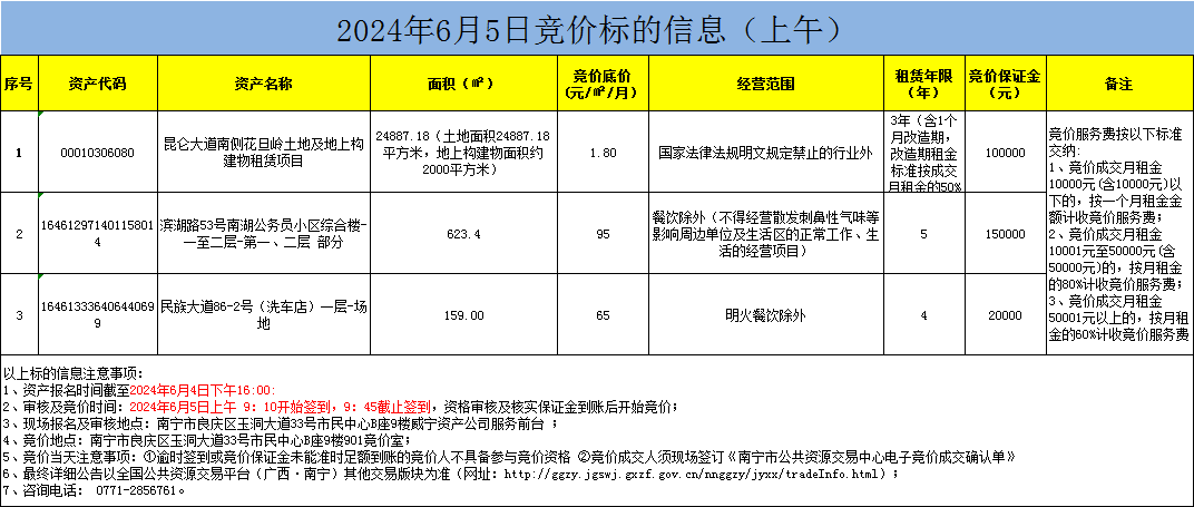 2024年6月5日競價標(biāo)的信息(現(xiàn)場競價)