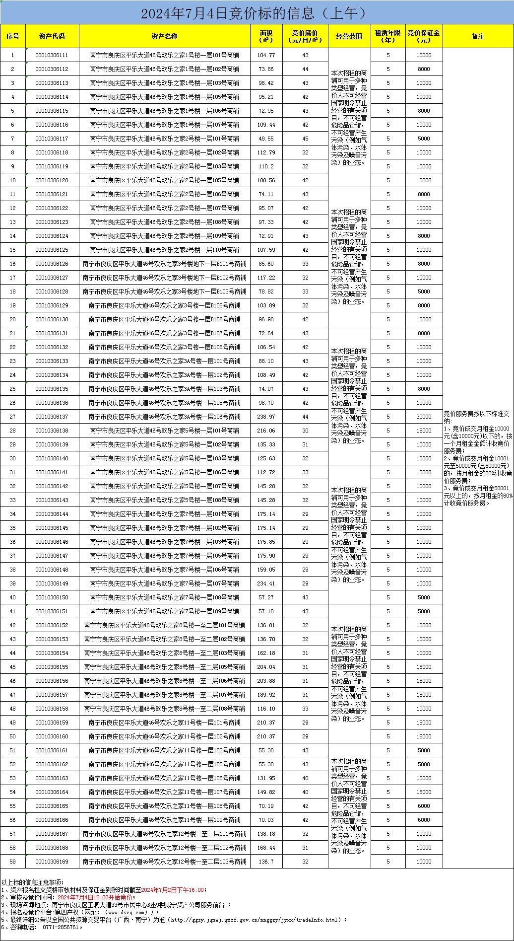 2024年7月4日競價標(biāo)的信息(線上競價)