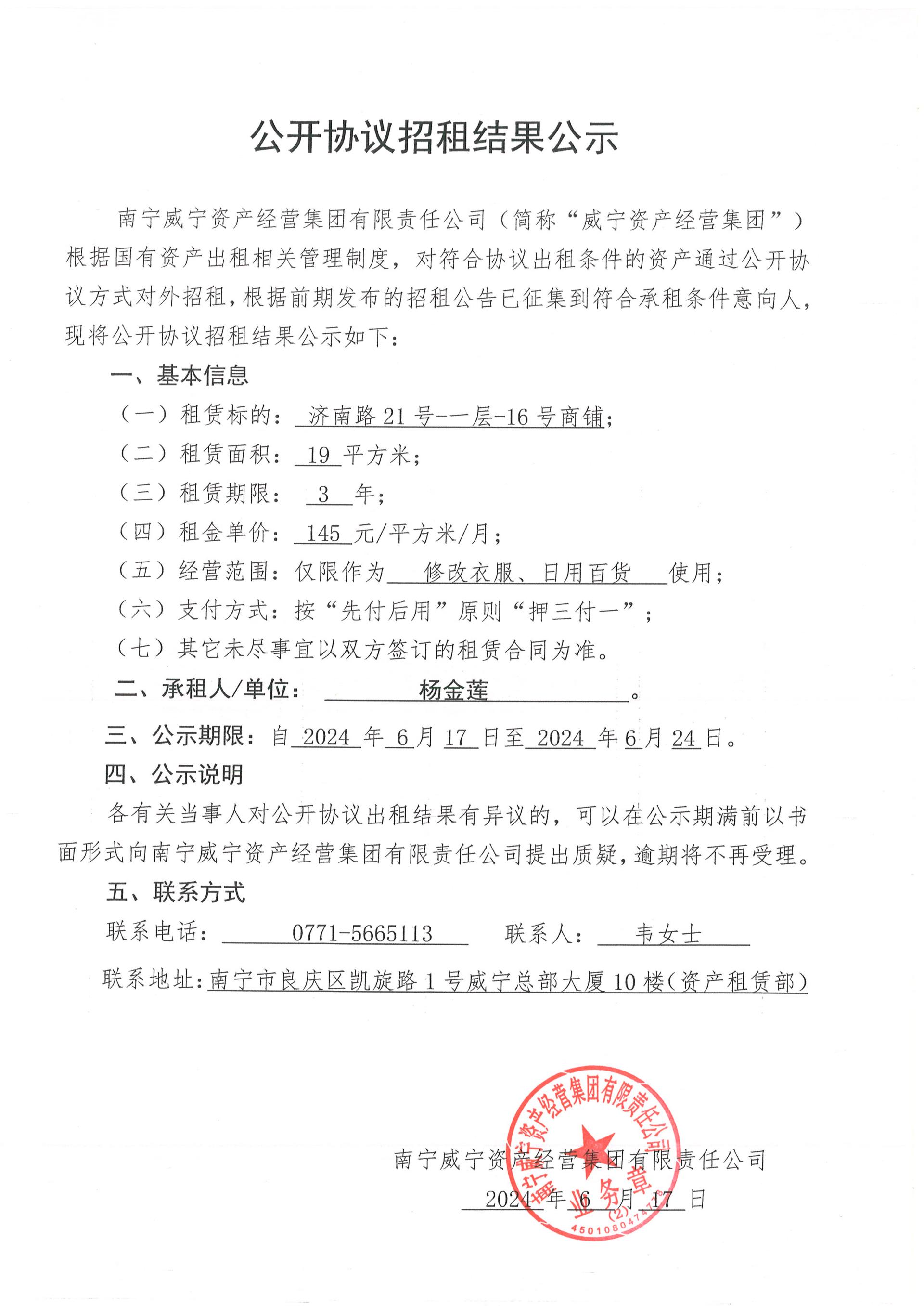 濟(jì)南路21號(hào)-一層-16號(hào)商鋪公開(kāi)協(xié)議招租結(jié)果公示
