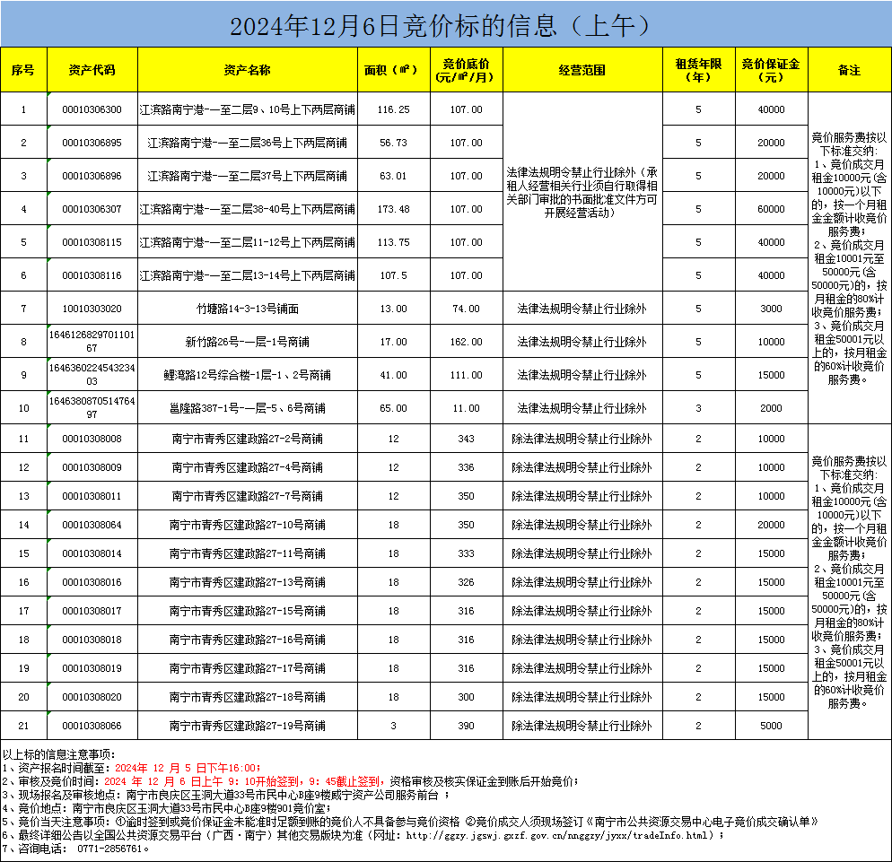 2024年12月6日競價標(biāo)的信息(現(xiàn)場競價)
