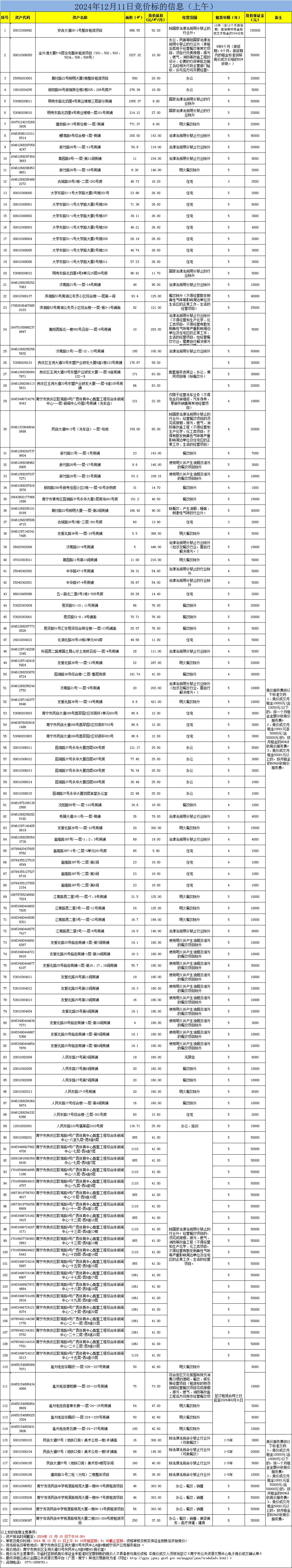 2024年12月11日競價標(biāo)的信息(現(xiàn)場競價)
