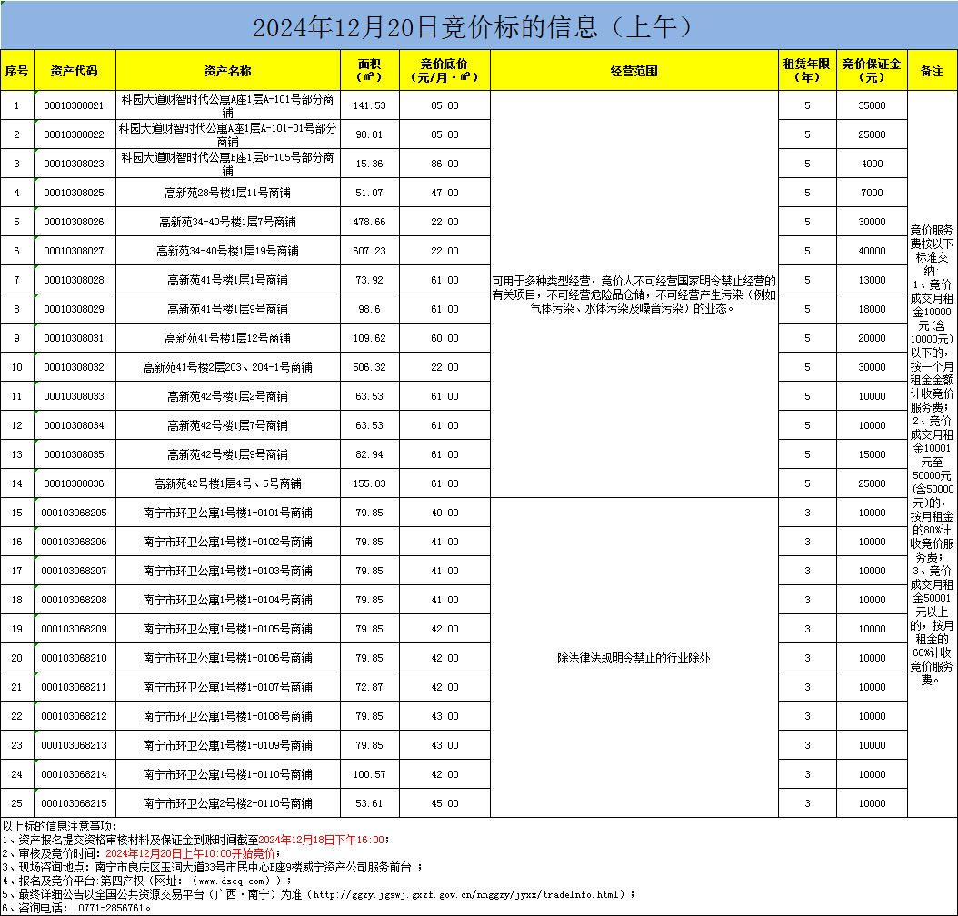 2024年12月20日競價(jià)標(biāo)的信息(線上競價(jià))
