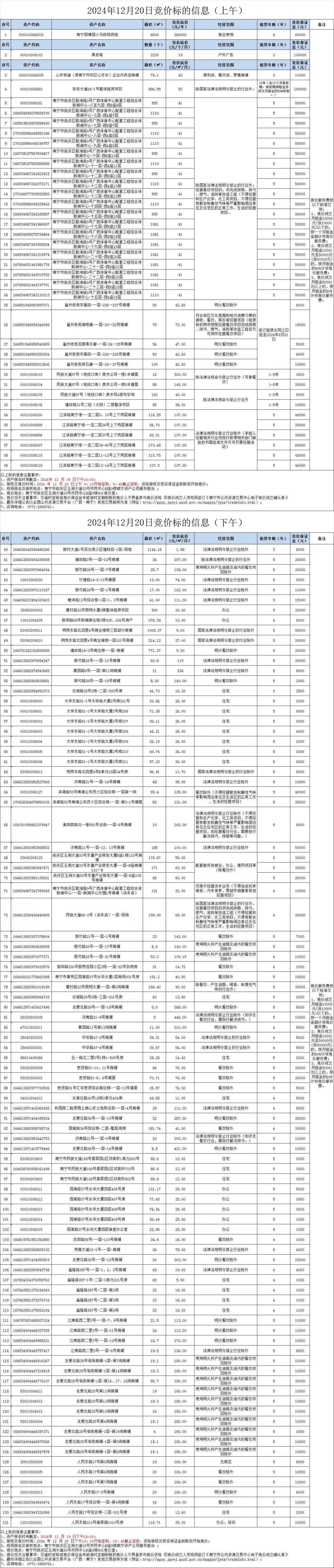 2024年12月20日競價標的信息(現(xiàn)場競價)
