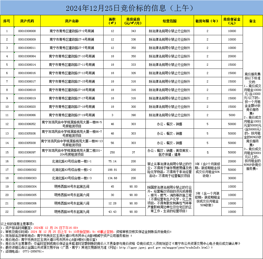 2024年12月25日競價(jià)標(biāo)的信息(現(xiàn)場競價(jià))