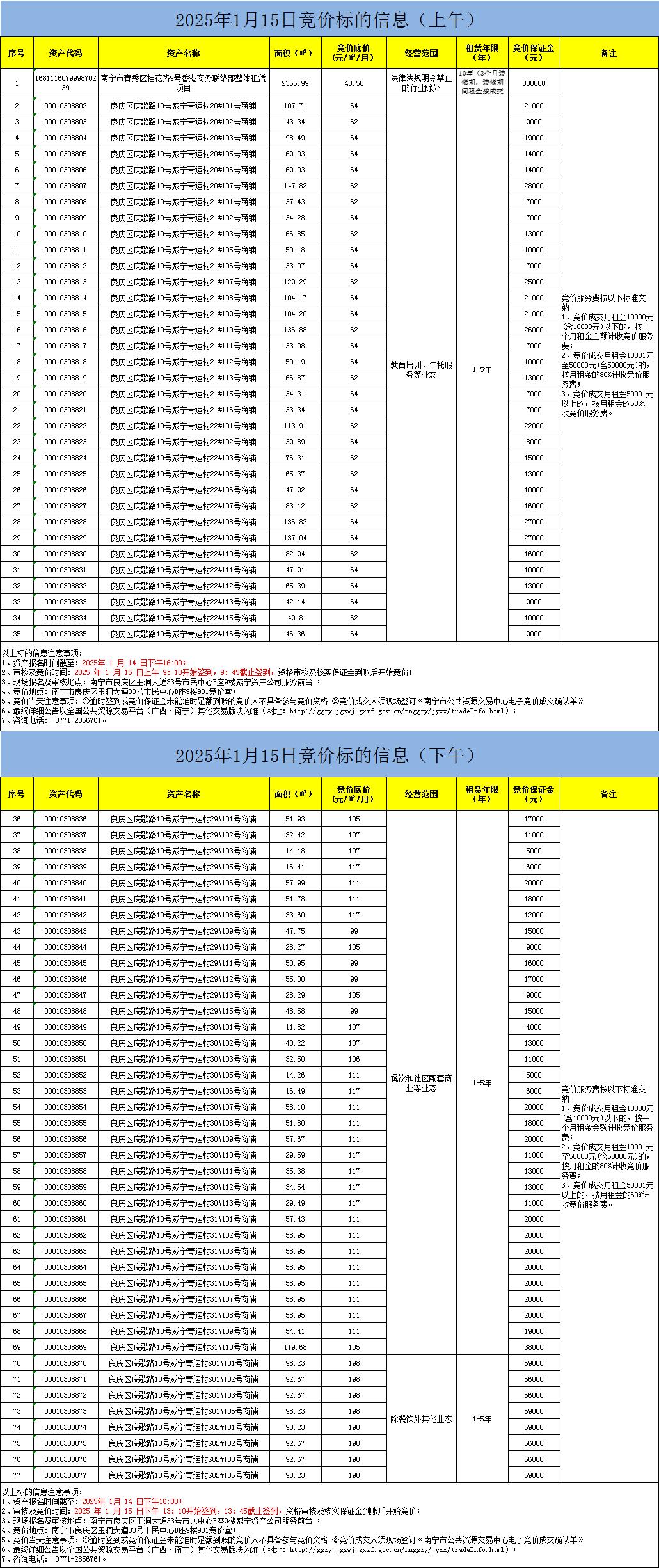 2025年1月15日競價標(biāo)的信息(現(xiàn)場競價)