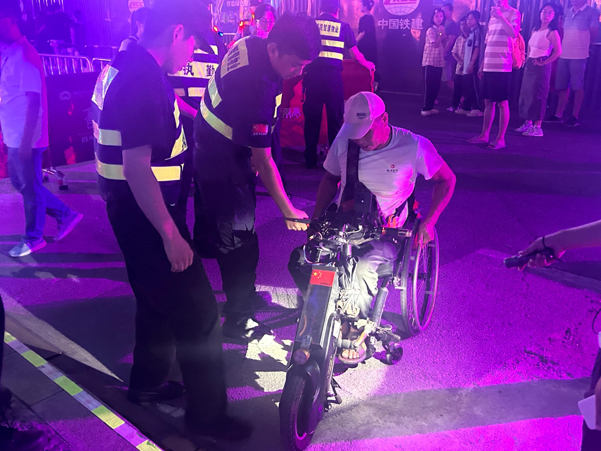 在演出現(xiàn)場,工作人員熱心幫助行動不便的市民上下坡,為市民提供有溫度的服務(wù)。