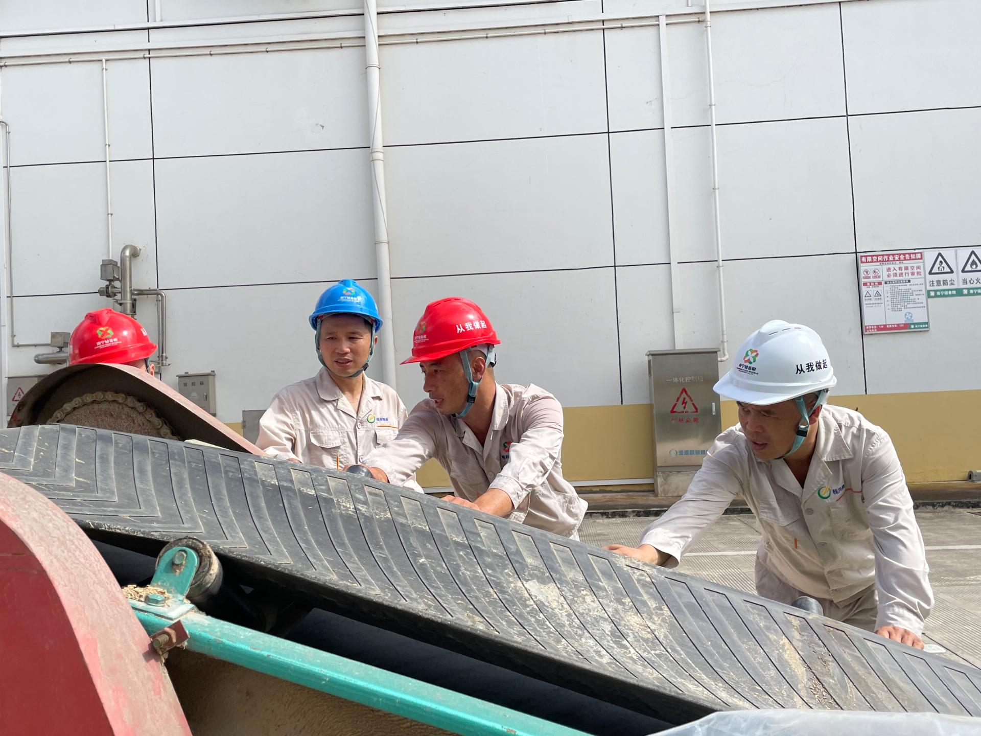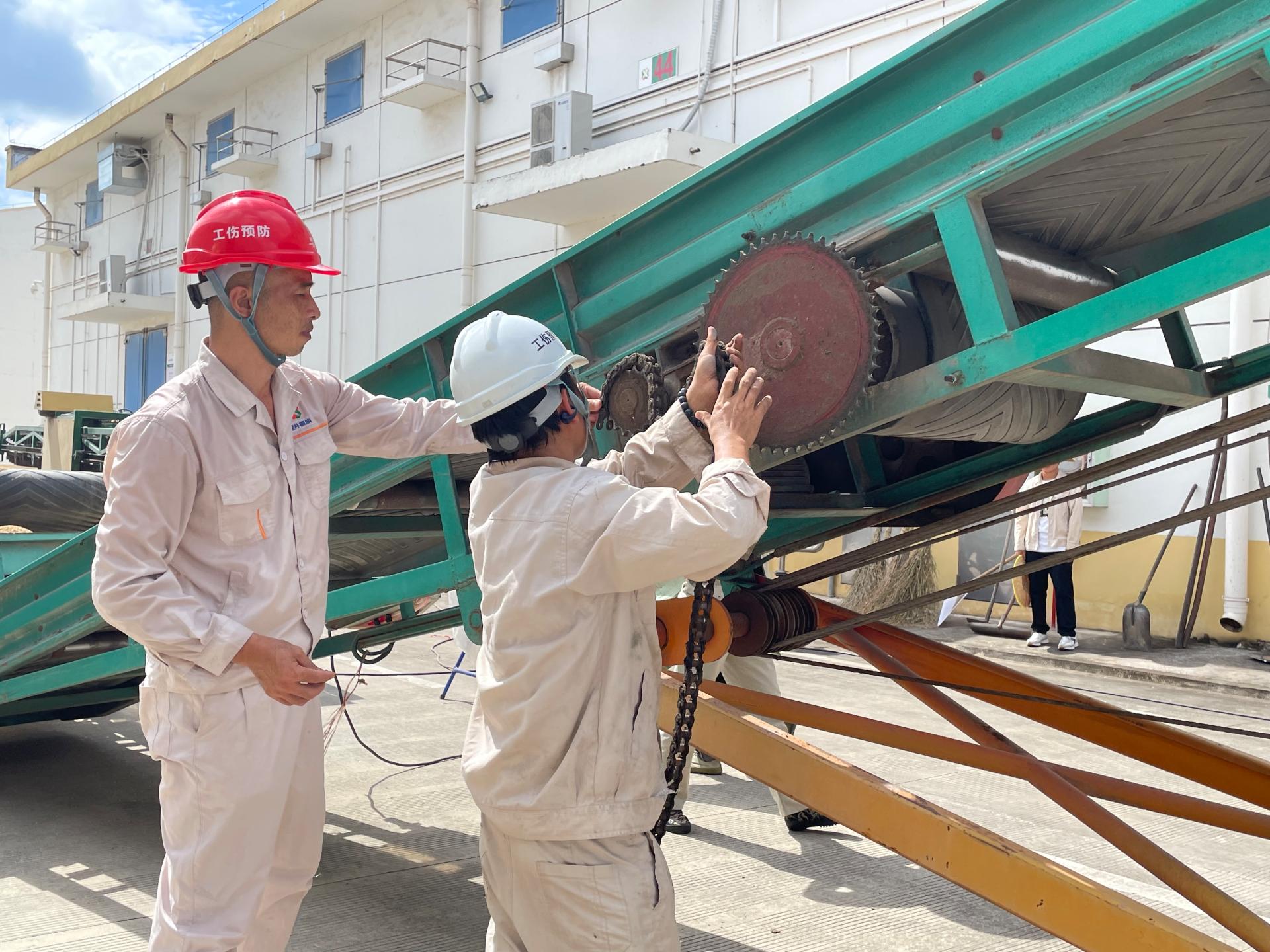 唐國強和同事們調(diào)整入糧設(shè)備位置