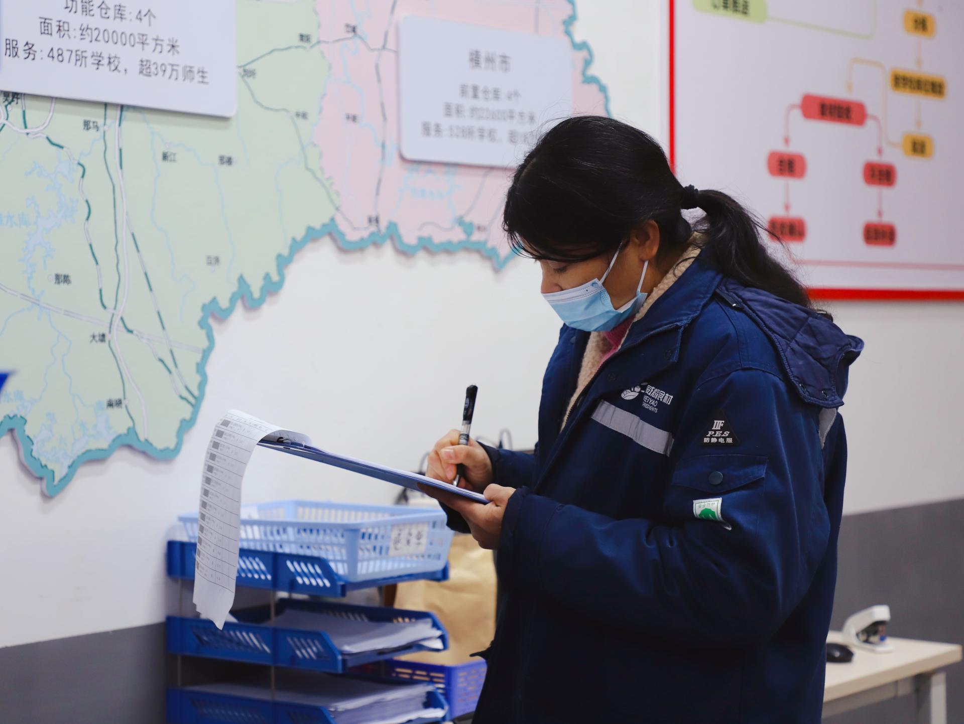 2022年底新冠疫情高峰時(shí)刻,每日都有不同的人員出現(xiàn)發(fā)燒癥狀,分揀組遇到了前所未有的困難。在人員不足的情況下,為保證學(xué)生們的餐桌上永遠(yuǎn)有熱乎的飯菜,保障學(xué)校食材的按時(shí)供應(yīng),五象配送基地員工每日都按時(shí)進(jìn)行核酸檢測(cè),進(jìn)出基地的人員嚴(yán)格核查健康碼及核酸檢測(cè)報(bào)告,每一位能上崗的“娘子軍”自發(fā)加班加點(diǎn),迅速調(diào)整工作機(jī)制,將當(dāng)日人員不足的小組重新組隊(duì)整合,實(shí)行片區(qū)包干分揀模式,在最短的時(shí)間內(nèi)梳理了一條環(huán)環(huán)相扣、有序推進(jìn)的分揀流程,確保疫情時(shí)期沒(méi)有一所學(xué)校因?yàn)榉謷蝿?wù)延誤準(zhǔn)時(shí)配送。