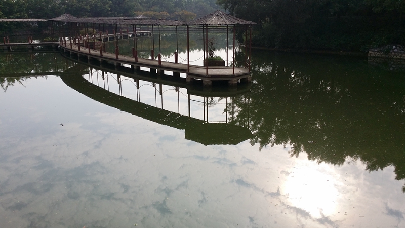 三九晨色霜冷兮,三九晨蘇迷離兮,三九晨曦朦朧兮,人漸醒,夜?jié)u央,一股凝霜凍九天,一盞陽(yáng)燈亮云綿,一水清池鏡中照,一弧廊亭欲梳妝,一曲靜謐繞亭梁……三九時(shí)節(jié)的晨,在這里不見(jiàn)天寒地凍的冷,也沒(méi)有萬(wàn)里冰封的雪,只有特屬于這里的“寒”,帶點(diǎn)瑟瑟入骨的冷,帶點(diǎn)微微入心的涼,甚是帶點(diǎn)爽爽提神的清新,而沉醉于寒夢(mèng)中的大自然似乎仍未蘇醒,難道是在等著晨暉的鬧鈴或是曙光的報(bào)曉,還是在等著有人把它們喚醒呢?其實(shí)都不然