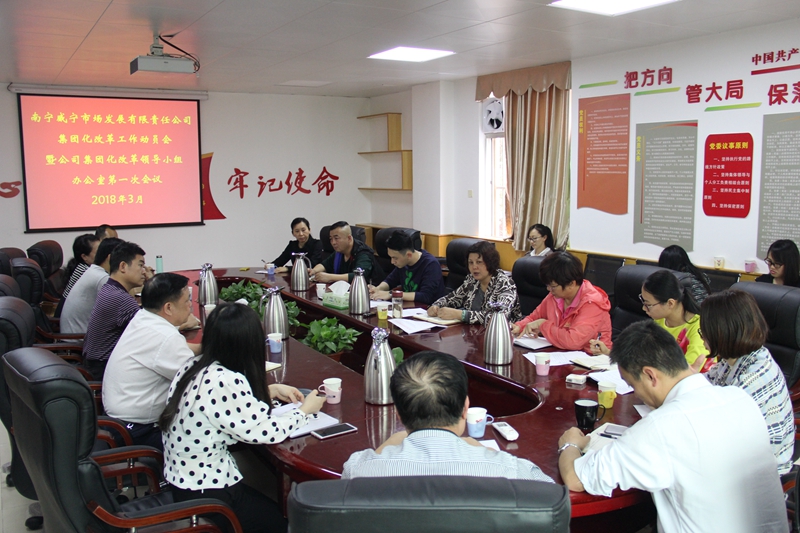 2018年3月28日,威寧市場(chǎng)公司召開(kāi)集團(tuán)化改革工作動(dòng)員會(huì)暨公司集團(tuán)化改革領(lǐng)導(dǎo)小組辦公室第一次會(huì)議,繼公司2018年經(jīng)濟(jì)工作會(huì)議提出加快企業(yè)改革的新思路、新舉措、新任務(wù)后,啟動(dòng)集團(tuán)化改革工作,明確任務(wù)分工。