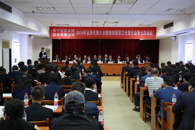 2018年4月8日,南寧百貨大樓公司召開(kāi)2018年會(huì)員代表大會(huì)暨第四屆職工代表大會(huì)第七次會(huì)議。大會(huì)分為兩個(gè)階段,第一階段為會(huì)員代表大會(huì),第二階段為職工代表大會(huì)。