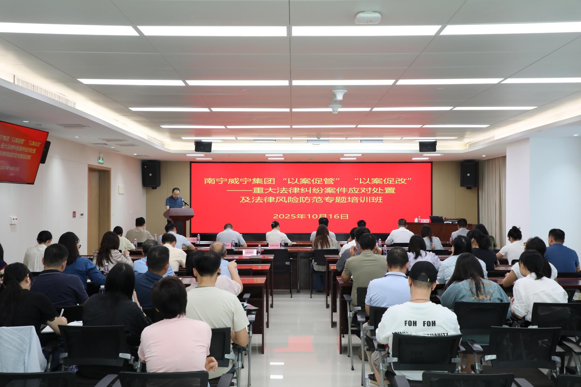 ?活動現(xiàn)場為深入貫徹落實全面依法治企要求,切實提升集團及各下屬企業(yè)應(yīng)對重大法律糾紛案件及法律風(fēng)險的能力,深刻剖析典型案例,總結(jié)經(jīng)驗教訓(xùn),推動管理提升與制度完善,實現(xiàn)“辦理一案、警示一片、規(guī)范一方”的治理效果,2025年10月16日下午,南寧威寧集團在威寧總部大廈501會議室舉辦“以案促管”“以案促改”——重大法律糾紛案件應(yīng)對處置及法律風(fēng)險防范專題培訓(xùn)班。集團副總經(jīng)理黃志煒出席培訓(xùn)活動。培訓(xùn)邀請北京大成(南...