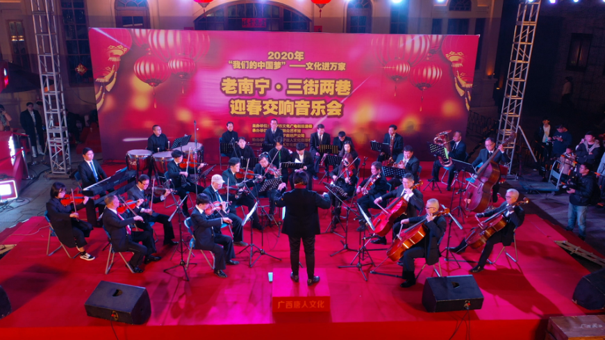 燈籠高掛辭舊歲,雅樂交響迎新春。2020年1月18日晚,老南寧?三街兩巷迎來南寧市2020年“我們的中國夢”文化進(jìn)萬家活動(dòng),一場經(jīng)典高雅的迎新年交響音樂會(huì)盛宴,為市民游客送上了一份特別的新春文化年貨。