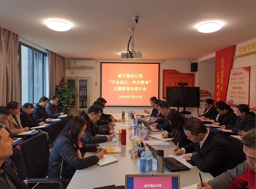 2020年1月21日,威寧酒店公司召開“不忘初心,牢記使命”主題教育總結(jié)大會(huì)。公司領(lǐng)導(dǎo)班子成員、各黨支部書記、各部門和門店負(fù)責(zé)人共30余人參加會(huì)議。