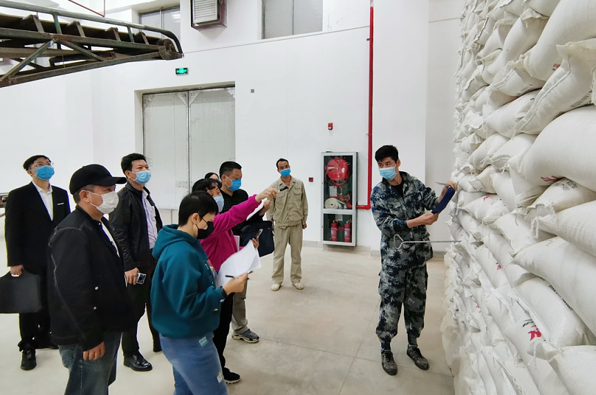 2020年4月10日,自治區(qū)糧食和物資儲備局執(zhí)法督查處處長唐雙貴帶隊到儲備糧公司,開展應(yīng)急成品糧庫存專項檢查,確保在特殊情況下,成品糧應(yīng)急儲備能夠“拉的出,供的上”。