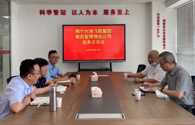 南寧大地飛歌集團(tuán)與威凱智慧物業(yè)公司就“云歌會”等工作開展業(yè)務(wù)洽談