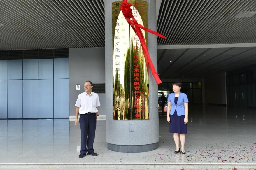 2020年6月16日,南寧大地飛歌文化產(chǎn)業(yè)集團(tuán)有限責(zé)任公司(以下簡稱大地飛歌集團(tuán))在廣西體育中心舉行揭牌儀式。南寧威寧集團(tuán)黨委副書記、總經(jīng)理,大地飛歌集團(tuán)黨委書記、董事長劉巧瑛與大地飛歌集團(tuán)黨委副書記、總經(jīng)理韋志民共同為公司揭牌。大地飛歌集團(tuán)黨委副書記、副總經(jīng)理梁凱主持揭牌儀式。
