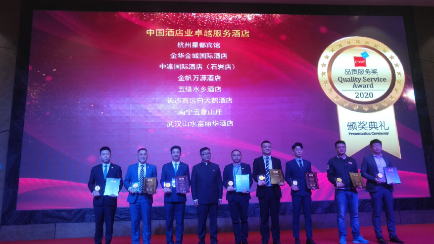 2020年10月30日,五象山莊總經(jīng)理梁革章應(yīng)邀出席在長沙舉辦的以“品質(zhì)與品牌:服務(wù)創(chuàng)新賦能高質(zhì)量發(fā)展”為主題,第四屆中國酒店服務(wù)創(chuàng)新論壇暨2020中國酒店業(yè)品質(zhì)服務(wù)獎頒獎典禮。五象山莊憑借其得天獨厚的自然環(huán)境、卓越的軟硬件設(shè)施、優(yōu)質(zhì)暖心的賓客服務(wù)以及良好的市場口碑,在激烈的評選角逐中得到組委會一致認(rèn)可,摘得2020中國酒店業(yè)品質(zhì)服務(wù)獎『中國酒店業(yè)卓越服務(wù)酒店』殊榮。