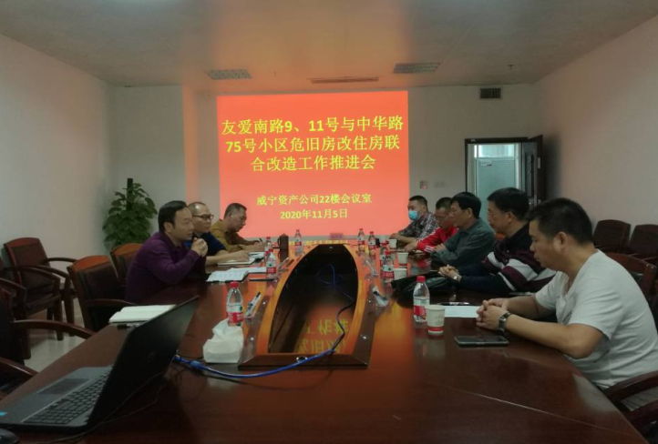 2020年11月5日下午,威寧資產(chǎn)公司召開加快推進(jìn)友愛南路9、11號與中華路75號危舊房改住房聯(lián)合改造的座談會,主動邀請參與項目建設(shè)的南寧市婦幼保健院、廣西南寧百益源食品有限責(zé)任公司、廣西居域房地產(chǎn)開發(fā)有限責(zé)任公司(項目代建單位)等相關(guān)單位進(jìn)行交流。