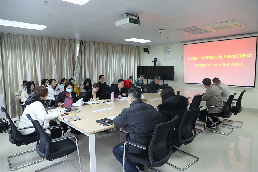 “威微網課”現場“威微網課線下分享活動,內容豐富,形式新穎,不僅為每位普通黨員打開了一扇自主學習的窗,更為大家架起了一座教學相長的橋,希望能一直堅持下去!”12月15日下午,威寧集團機關第二黨支部開展12月黨員集中活動暨“威微網課”線下分享交流會后,人力資源部的曾小翠欣喜之情溢于言表。據介紹,機關黨總支自2020年7月以來,探索開展了“威微網課”學習模式,即每月由一名普通黨員、聚焦一個主題、線上分