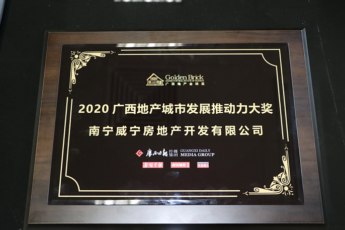 近日,2020年廣西地產(chǎn)金磚獎頒獎盛典在國際會展中心朱槿花廳舉行。威寧房地產(chǎn)公司受邀參加了此次年度盛會,并榮獲“2020廣西地產(chǎn)城市發(fā)展推動力大獎”、“2020區(qū)域標(biāo)桿樓盤大獎(威寧青運(yùn)村)”等獎項。