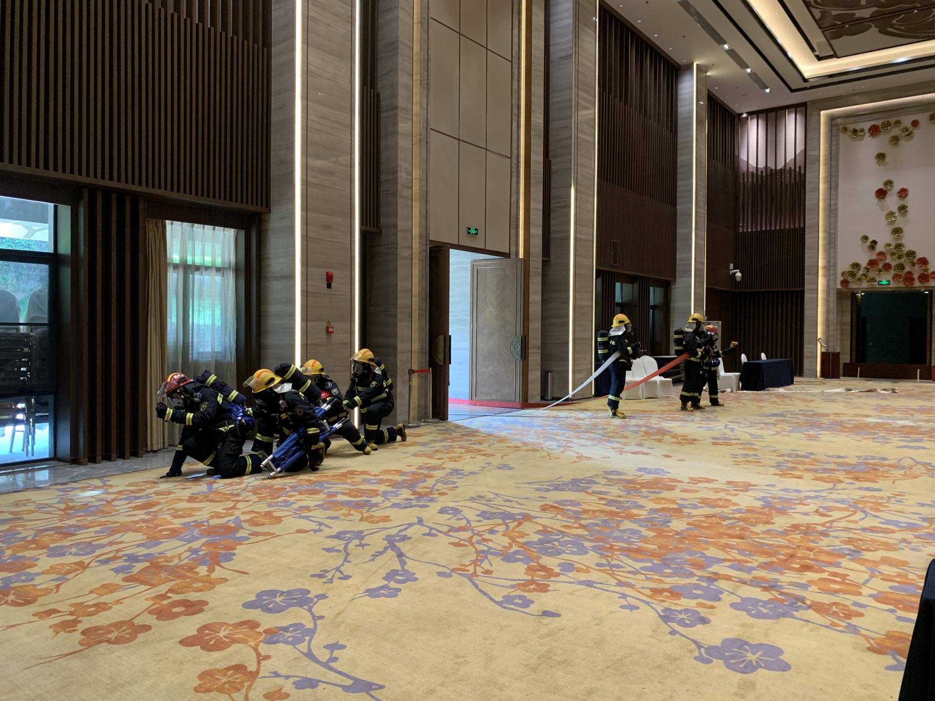 為消除消防安全隱患,提高義務(wù)消防隊(duì)?wèi)?yīng)急處置能力,確保第21屆中國—東盟博覽會、中國—東盟商務(wù)與投資峰會(簡稱東博會和峰會)期間各項(xiàng)接待任務(wù)順利完成,近日,五象山莊攜手南寧市消防救援支隊(duì)、南寧市良慶區(qū)消防救援大隊(duì),開展消防安全隱患排查整治及火災(zāi)應(yīng)急處置演練。此次演練共有50余名消防指戰(zhàn)員、8名山莊微型消防站義務(wù)消防隊(duì)員參加,出動各類消防作戰(zhàn)車輛8輛,模擬在大型會議室召開會議時發(fā)生火災(zāi)的情景,對初期火災(zāi)...