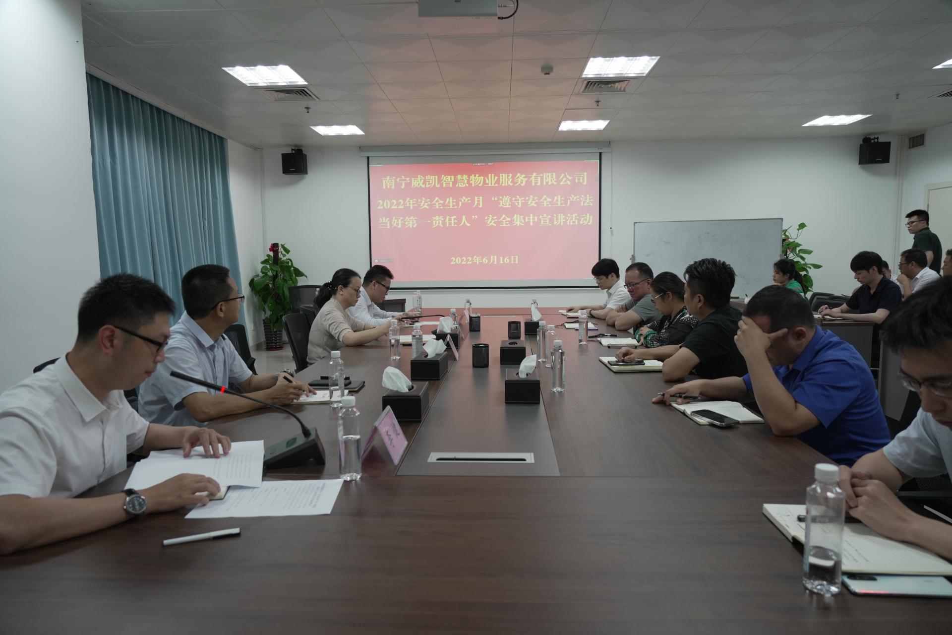 場(chǎng)2022年6月,是第21個(gè)全國(guó)“安全生產(chǎn)月”。威凱智慧物業(yè)深入貫徹學(xué)習(xí)習(xí)近平總書(shū)記、李克強(qiáng)總理的重要指示精神,嚴(yán)格落實(shí)國(guó)務(wù)院安委會(huì)、國(guó)資委的部署要求,就安全生產(chǎn)工作進(jìn)行進(jìn)一步細(xì)化,下發(fā)到各部門(mén)各監(jiān)管公司各托管物業(yè)逐一落實(shí),向黨和人民交出一份滿意的答卷。安全教育不松懈防患于未“燃”6月16日下午,威凱智慧物業(yè)邀請(qǐng)南寧市安全管理協(xié)會(huì)會(huì)長(zhǎng)夏...