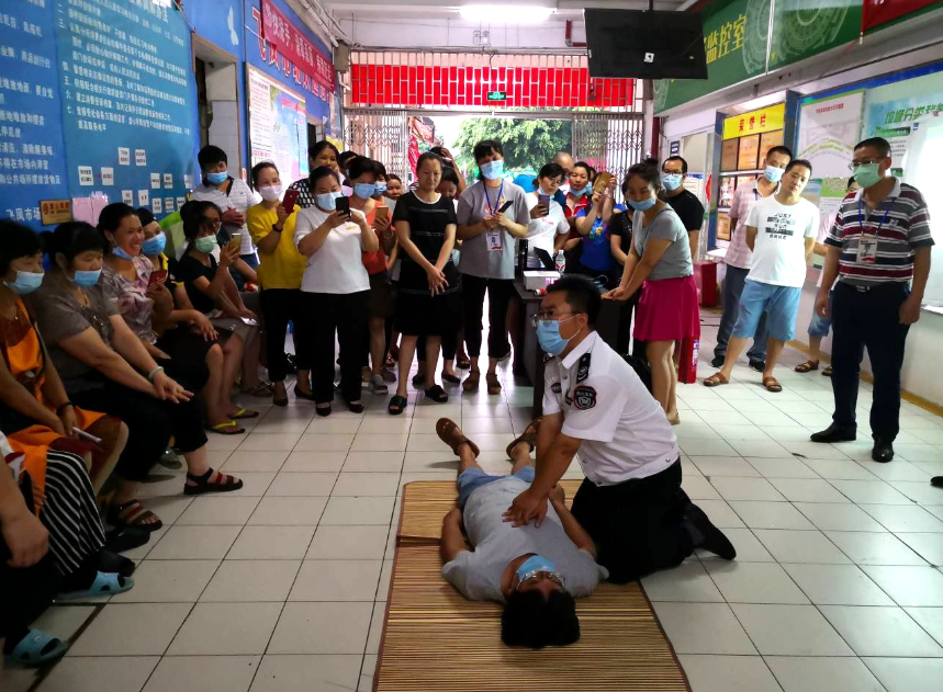 為增強農貿市場人員對消防安全及應急救助知識的了解,加強群防群治力量,2020年6月10日,威寧市場公司經營管理的飛鳳市場組織市場工作人員、經營戶在市場內開展了消防安全知識及心臟復蘇急救方法培訓。