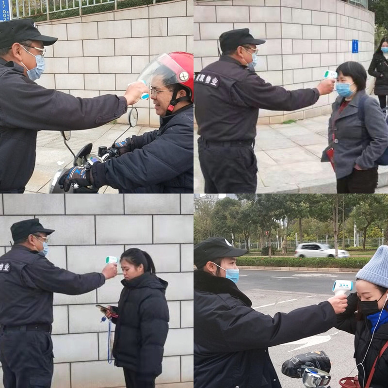 圖為威凱智慧物業(yè)工作人員對來訪者認真進行體溫檢測。 面對來勢兇猛的新型冠狀病毒感染肺炎疫情,南寧威寧集團監(jiān)管單位南寧威凱智慧物業(yè)服務有限公司(以下簡稱威凱智慧物業(yè)),全力以赴防控疫情,扎實做好南寧市近百處住宅小區(qū)、商業(yè)廣場以及工程項目的物業(yè)服務管理。 威凱智慧物業(yè)快速成立威凱智慧物業(yè)防控疫情指揮中心,全面指導項目部防控工作,調配人力資源、統(tǒng)籌防護物資、協調相關工作、穩(wěn)定員工情緒、落實各項防控措施;