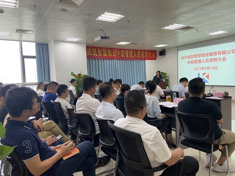 為加強(qiáng)公司用工管理和人才隊(duì)伍建設(shè),拓寬選人用人渠道,近日,威凱智慧物業(yè)公司舉行中層管理人員競(jìng)聘大會(huì),選拔各部門中層管理人員。這是公司在拓寬選拔平臺(tái)、優(yōu)化人才配置,激活隊(duì)伍活力的一次有益嘗試。