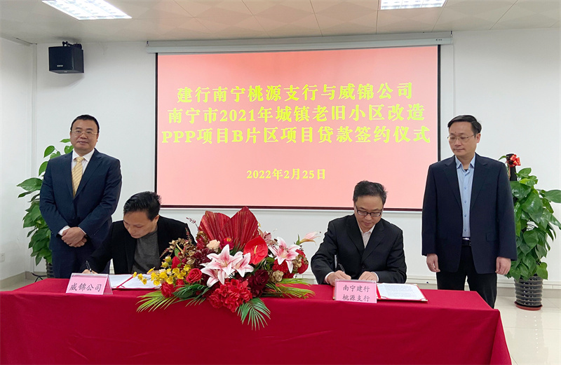 2022年2月25日,南寧市2021年城鎮(zhèn)老舊小區(qū)改造PPP項(xiàng)目B片區(qū)項(xiàng)目獲中國(guó)建設(shè)銀行南寧桃源支行授信1.47億元,用于保障項(xiàng)目建設(shè)。