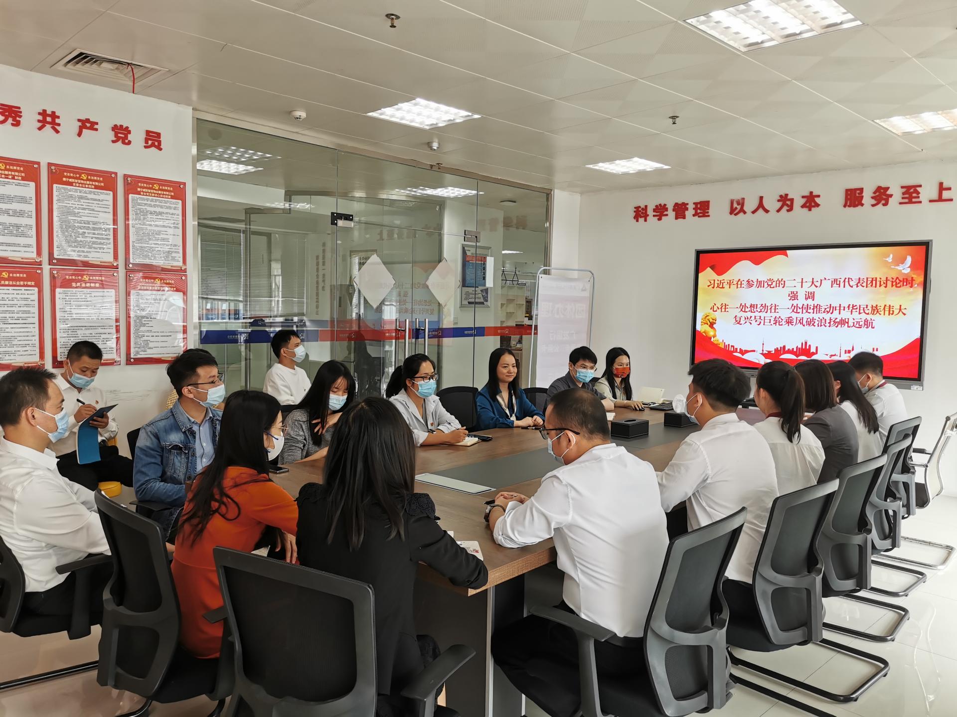 為強(qiáng)化黨建先鋒引領(lǐng),親商強(qiáng)企促發(fā)展,10月19日,威凱智慧物業(yè)公司聯(lián)合黨支部與廣發(fā)銀行信用卡中心南寧分中心黨支部在廣西新聞中心12樓黨建會(huì)議室開展支部共建交流活動(dòng)?;顒?dòng)正值黨的二十大召開期間,大家共同認(rèn)真學(xué)習(xí)領(lǐng)會(huì)黨的二十大報(bào)告精神、習(xí)近平參加黨的二十大廣西代表團(tuán)討論時(shí)的重要講話精神,黨員們紛紛表示,要深入學(xué)習(xí)、深刻領(lǐng)會(huì)黨的二十大報(bào)告中提出的新思想、新判斷、新目標(biāo)、新舉措,把思想和行動(dòng)統(tǒng)一到黨...