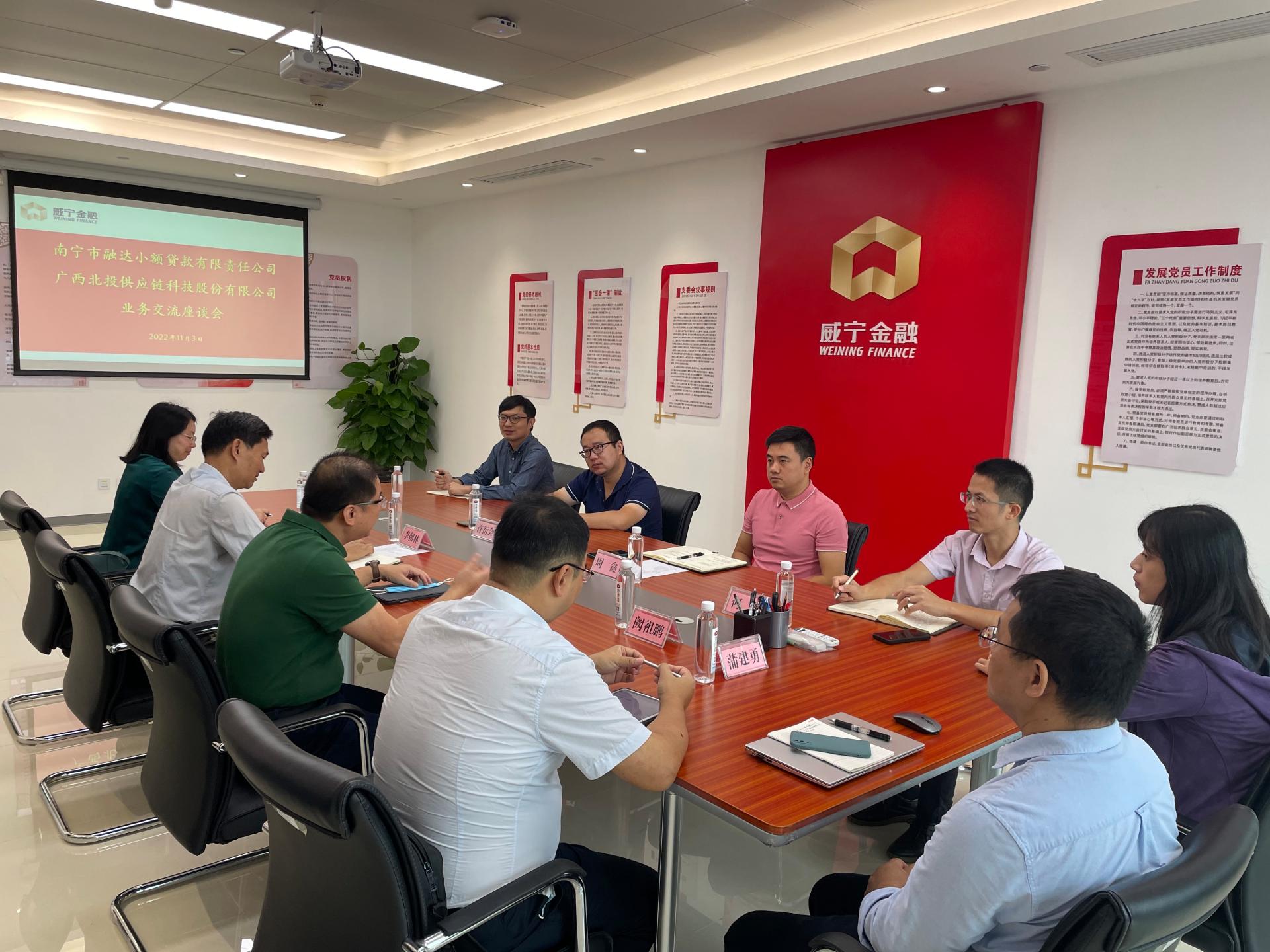 為不斷推進(jìn)“金融+科技”發(fā)展戰(zhàn)略,全面深化業(yè)務(wù)數(shù)字化轉(zhuǎn)型,11月3日上午,廣西北投供應(yīng)鏈科技股份有限公司(以下簡(jiǎn)稱“北投供應(yīng)鏈公司”)董事長(zhǎng)黃劍一行率隊(duì)來(lái)到融達(dá)小貸公司開展業(yè)務(wù)交流座談。會(huì)上,雙方就金服業(yè)務(wù)系統(tǒng)搭建、供應(yīng)鏈金融中的應(yīng)用與發(fā)展等內(nèi)容進(jìn)行了深入交流。黃劍表示,北投供應(yīng)鏈公司長(zhǎng)期以來(lái)致力于推動(dòng)區(qū)內(nèi)供應(yīng)鏈金融行業(yè)的科技發(fā)展水平,希望能通過(guò)此次業(yè)務(wù)系統(tǒng)開發(fā)合作作為紐帶,與融達(dá)小貸公...