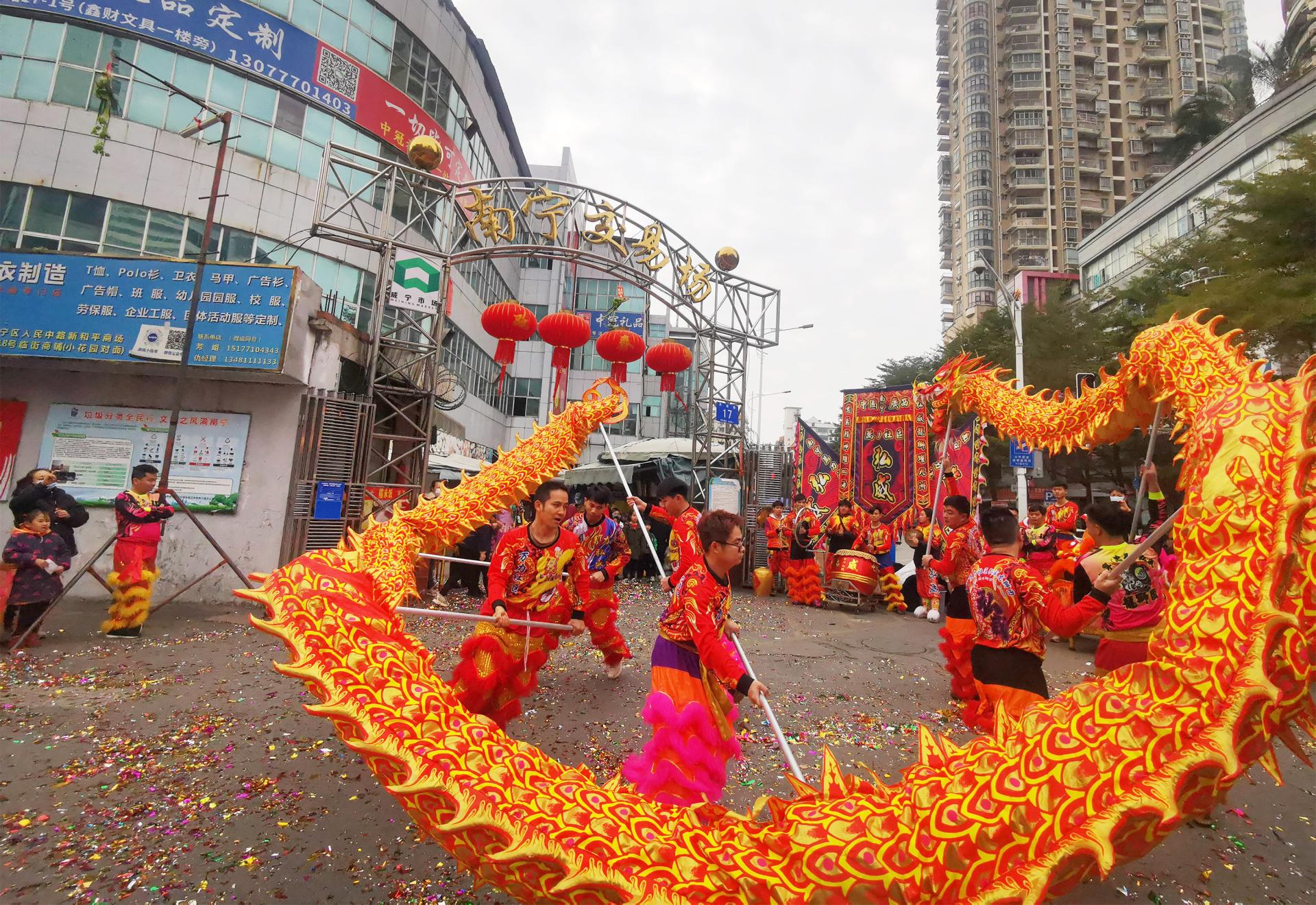 2023年正月初八,威寧市場(chǎng)公司所屬和平商場(chǎng)、南寧交易場(chǎng)、水街市場(chǎng)、津頭市場(chǎng)、五里亭農(nóng)貿(mào)市場(chǎng)等國(guó)有商場(chǎng)、市場(chǎng)分別開展了熱熱鬧鬧的“金龍醒獅賀新年”迎新開年活動(dòng)。中國(guó)傳統(tǒng)民俗“醒獅賀歲”,寓意“新年發(fā)發(fā)發(fā)”,舞獅慶賀“開工大吉”!上午吉時(shí)一到,鑼鼓齊鳴,金龍醒獅歡騰。象征吉祥如意的醒獅隨之起舞,...