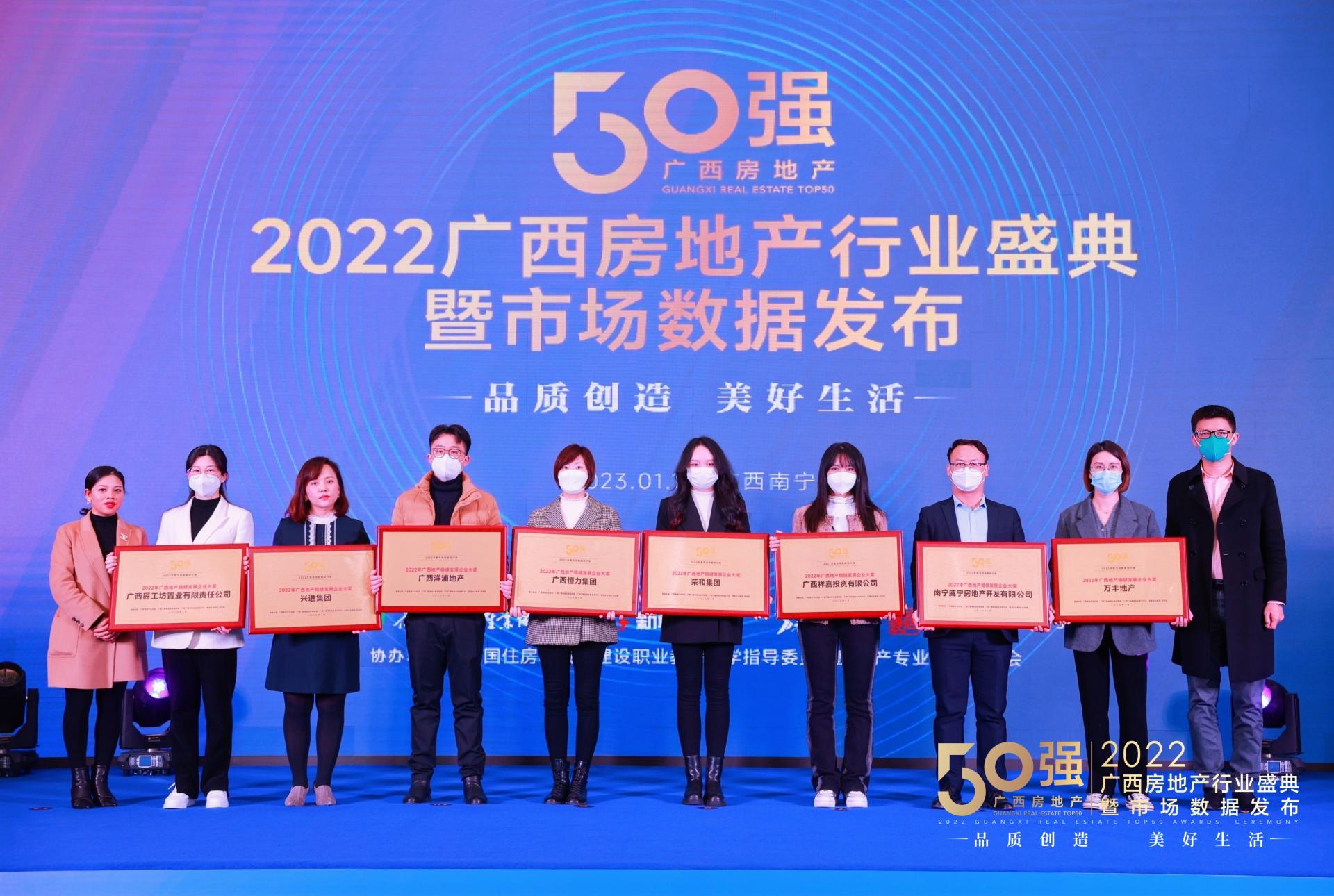 ?2023年1月10日,“品質(zhì)創(chuàng)造·美好生活”2022廣西房地產(chǎn)行業(yè)盛典暨市場(chǎng)數(shù)據(jù)發(fā)布活動(dòng)在南寧圓滿落幕。本次盛典行業(yè)“大咖”強(qiáng)強(qiáng)聯(lián)合,公信力、引導(dǎo)力凸顯。威寧房地產(chǎn)公司憑借不俗業(yè)績(jī),斬獲七項(xiàng)榮譽(yù)大獎(jiǎng),為剛剛過(guò)去的2022年公司各項(xiàng)工作畫上圓滿句點(diǎn)。“用數(shù)據(jù)說(shuō)話”,加上行業(yè)權(quán)威協(xié)會(huì)、官方媒體和專業(yè)第三方機(jī)構(gòu)的共同研判分析,讓盛典各類榜單具有較高權(quán)威性,是廣西房地產(chǎn)行業(yè)兼具權(quán)威性的年度典禮之一。本次盛會(huì)重磅發(fā)布2...