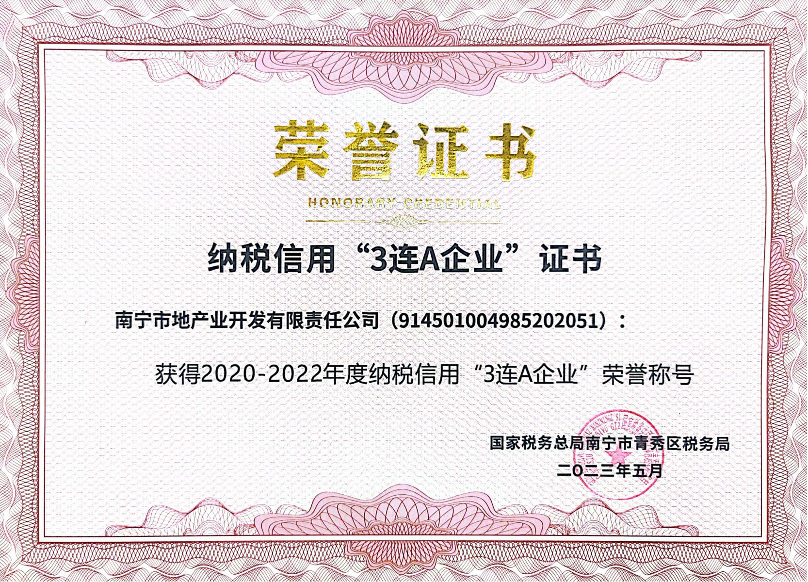 喜報(bào)!地產(chǎn)業(yè)公司榮獲2020-2022年度納稅信用“3連A企業(yè)”榮譽(yù)稱號(hào)